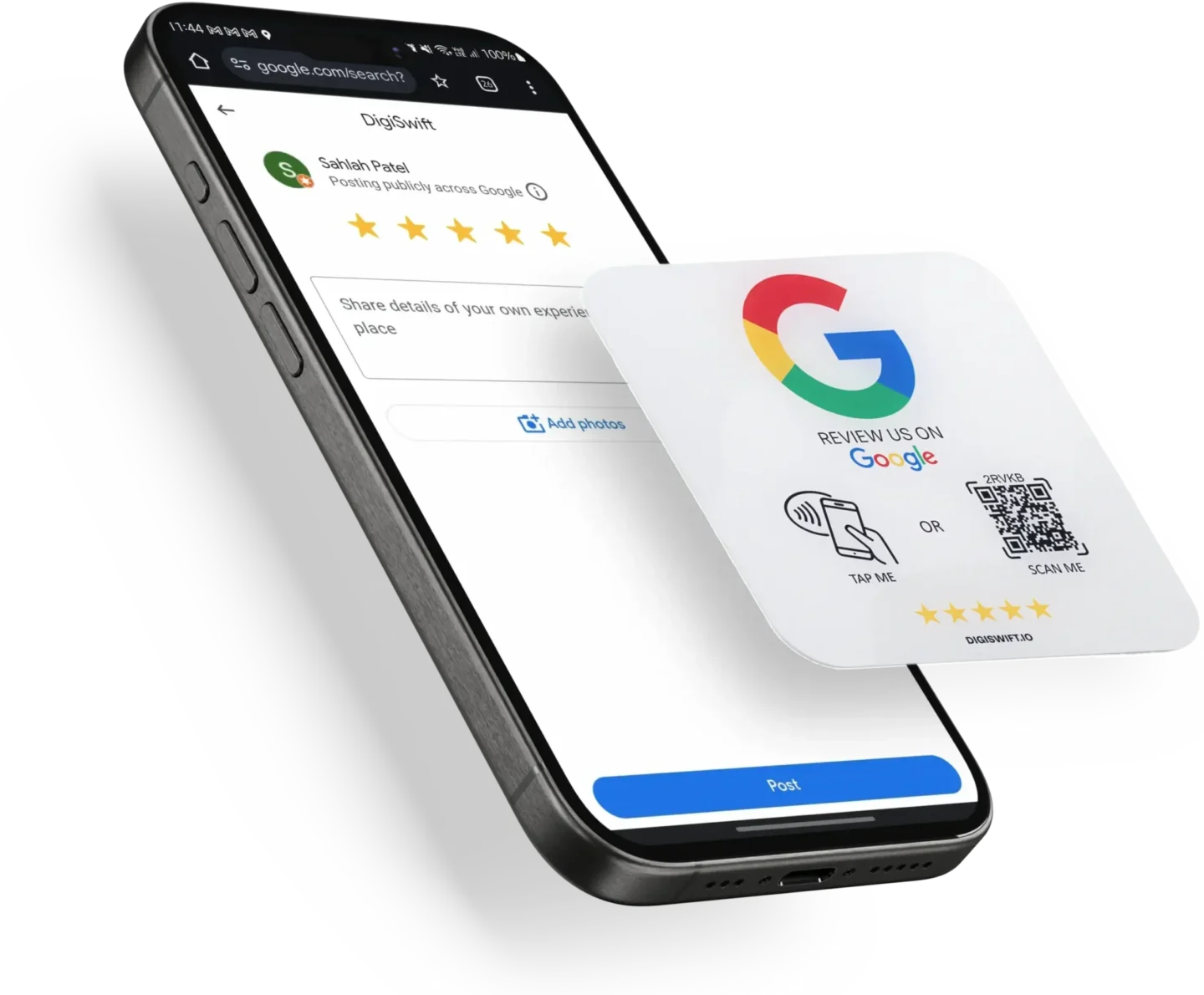 Our products are pre-programmed to redirect customers to your chosen destination, like a review page or social media account. Customers can simply tap the NFC tag or scan the QR code with their phone – no apps or extra steps required.