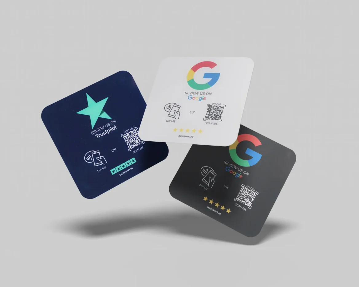 Our products are pre-programmed to redirect customers to your chosen destination, like a review page or social media account. Customers can simply tap the NFC tag or scan the QR code with their phone – no apps or extra steps required.