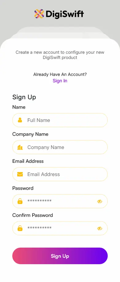 Sign up and create an account. You can use this to manage your DigiSwift products.